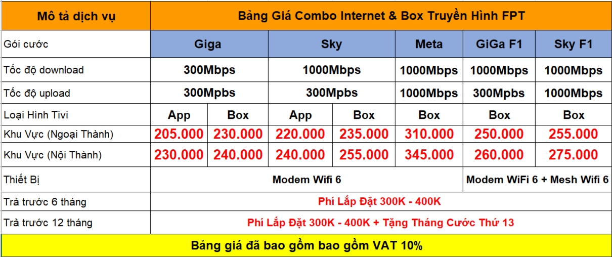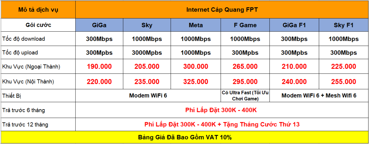 Bảng Giá Cước Internet FPT TP.HCM