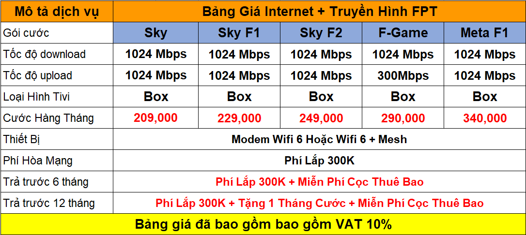 • Combo Internet + TV: từ 200.000đ/tháng